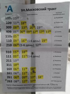 • 109 · до Ушакова; с заездом туда в СНТ Москвичка, обратно с заездом в Гусевоto Автовокзал Тюмень