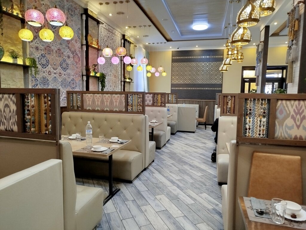 Очень вкусная еда, быстро обслужили. Внутри очень уютно, красиво и чисто. Есть летник - достаточно уютный, беседки со шторками, между беседками клумбы с растениями) Меню очень красивое, красочное, все блюда подписанные на трёх языка - киргизском, русском и английском. Цены на наш взгляд не завышенные (на трассе ели дороже или так же). Есть хороший выбор европейской кухни, и большой выбор национальных блюд Брали баклажаны хрустящие и куурдак с бараниной, лимонад и чай Почти полная посадка, приходят местные семьями, с детьми.