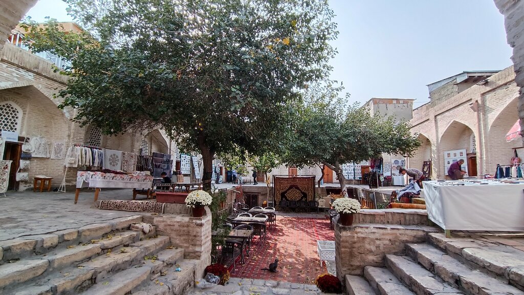 Колоритное место - караван-сарай, вечером играет музыка, очень красиво. На углу здания очень колоритный дяденька, меняющий рубли на сумы по нормальному курсу (до 23-00 в сезон).