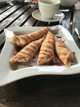 Очень вкусные чай и блинчики, но сервис испортил все впечатление. Официанты - три подростка, которым вообще не интересно, чем они занимаются. При неполной посадке в кафе сначала три неубранных стола их 5 на веранде. Постояли, подождали, сходили за официантом. Потом посидели, подождали меню. Девушки за соседним столиком сбегали за меню сами. Потом подождали, чтоб приняли заказ, хотя официанты постоянно мимо проходили. Потом две тарелки с блинами принесли, судьбу 3й опять пришлось идти узнавать. При этом каждый раз, когда мы обращались к нашему официанту, ответ сквозь зубы и максимально тихо. Убрать грязные тарелки? Предложить что-то ещё или счёт? Нет, сами до стойки дойдете, если надо. В общем, персонал - жирный минус этого заведения