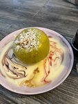 Заказали кофе и десерты. Принесли кофе не очень горячий,а десерты ещё минут через 5.. К этому моменту кофе окончательно остыл. Брали медовик - вкусный. И яблочный тарт татен - в меру сладкий, вполне приличный. В меню этот десерт почему то называется тарт татэм))))