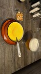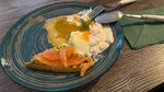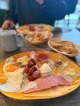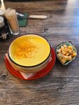 Зашли, поверив отзывам и рейтингу. В целом неплохо, но сырный суп с креветками просто ужасен, таких блюд не должно быть в меню в принципе. Кажется, что это просто расплавленная фета или бранза, окрашенная куркумой, в которой плавает одна (!) креветка, порещанная на 4 части. Ничего более мерзкого я не пробовала уже давно. Ни рыбного вкуса, ни кремовой нежной некстуры, ну и снова - одна (!) порезанная креветка. В общем, уберите эту гадость из меню 🤢 Бифштекс с яйцом был вполне себе, если закрыть глаза, что бифштекс - это все же котлета, а не просто кусок мяса прожарки медиум. Блинчики обычные, вкусные, варенья к ним много, кофе вкусный. А, официант не предупреждает заранее, что из меню в стопе. В итоге сидели вибирали, выбрали - а оказалось, вся свинина в стопе, выбирайте снова.