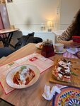 В целом нам понравилось,ходил с женой на свидание.чень красивая уютная атмосфера мы сидели на улице,красивые столики, атмосфера итальянская будто. Но столики уж ооооочень маленькие,ничего не помещается вкусная еда 9/10 обслуживание не понравилось 4/10 вкусный обычный лимонад из бутылки внутри ресторана мне кажется тесно и душно .Жена приходила прямо за лазаньей ,несколько раз не удавалось попасть ,сейчас пришли ,а лазаньи нет . Достаточно маленькое и сжатое меню:есть только паста и пиццы ,больше ничего