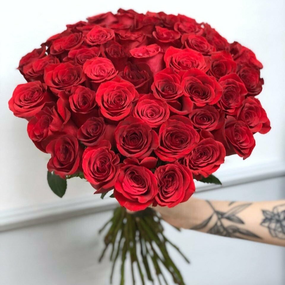 букет из 51 красной кенийской розы в яркой упаковке