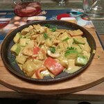 Ужинали в заведении с друзьями. Формат пивного бара - не моя тема, но нужно отдать должное: два зала, один большой с огромными экранами для просмотра спортивных мероприятий, второй зал небольшой - камерный. Блюда заказывали одновременно 4 человека, приносили по готовности, поэтому двое кушали,а двое ждали. Туалетная комната чистая ( 2 кабинки), бумага, мыло- все есть. Я заказала курицу с овощами в соусе кари. Съедобно. Друзья заказали сырные палочки, не дождались за 15 минут и чек долго несли