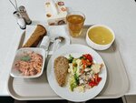 Отвратительная еда, овощи с горчинкой, котлета сухая, суп пресный, салат и компот норм. Больше сюда не заеду, даже если буду умирать с голоду. Еда не соответствует цене!!!!