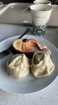 Большое кафе, красивый и новый интерьер. Чистота везде. В туалете просторно, чисто. На троих взяли три супа с лапшой, котлета куриная с рисом, три манта с мясом. Компот, чай. 985р. Цены приемлемые. Вся еда с перцем, ребенок толком ничего не поел, только компот и пол манта. Манты очень вкусные.