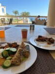 Отель 4* находится на первой береговой линии! Территория большая и красивая! Анимация старается, но примерно , как в стандартной 5 -ке Египта. Самый большой плюс данного отеля, на мой взгляд, это классный вход в море, песчаный, ровный. Накупались вдоволь, море прозрачное, подводный мир впечатляет! Можно прыгать с пирса, но будьте аккуратны слева от пирса недалеко риф, не поранитесь! Раньше этот отель был 5 звезд, сейчас 4 звезды, думаю из за питания, здесь не большой ассортимент и большие очереди. Это самый главный минус . Номер нам дали хороший, на первом этаже, можно сразу выходить из балкона на улицу, что очень удобно. Рекомендую съездить в ресторан Фарес ( фирменный суп очень вкусный). Так же ездили в интересное кафе- ресторан Фарша , который находится прям в горах, очень красиво и колоритно! Такси через приложение Индрайвер недорого выходит. В общем и целом, нам понравилось, если не обращать внимание на мелочи и скромное меню ( относительно других 4,5*) .