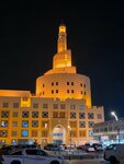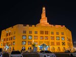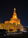 Стоит это великолепное архитектурное сооружение на набережной среди торговых кварталов и крытых рынков. Ещё его называют Исламским культурным центром Абдуллы бен Заида Аль Махмуда. Главное , конечно, в центре это мечеть, оригинальный минарет которой возвышается над всеми близлежащими сооружениями и является главенствующей опорной точкой побережья. Почему-то минарет мне напомнил знаменитую вавилонскую башню. Мечеть открыта для посещения немусульманами. В центре есть библиотека. Здесь желающих бесплатно учат арабскому языку. Есть что-то вроде музеев. Туристы могут насладиться традиционным кофе и познакомиться с катарским образом жизни, наследием и культурой страны. Станция метро и остановки автобуса рядом. Проходили вблизи очень часто. Любовались.