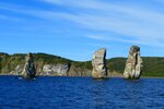 Хочу выразить искреннюю благодарность всей команде за незабываемые эмоции! Два дня в море пролетели как миг. На протяжении всего путешествия члены экипажа были доброжелательными, позитивными, внимательными и отзывчивыми. Капитан приветствовал нас с палубы и помог подняться на борт, помощник капитана показал, где расположены кают-компания и каюты, в которых мы можем оставить свои вещи. Когда вся группа собралась в кают-компании за столом, накрытым всевозможными закусками, мы познакомились с командой и прослушали инструктаж по технике безопасности. Для тех из нас, кого укачивает или может укачать, были предложены специальные таблетки. Пока катамаран шёл от причала на выход из бухты, повар приносил нам свежеиспечённые ароматные блинчики, которые мы начинали заполнять тем, чем захотим. После завтрака я вышла наружу и увидела, как следом за катамараном летит стая чаек. Ветер был прохладный, поэтому я взяла плед и направилась на нос катамарана, чтобы полюбоваться Авачинской бухтой, окружающими её сопками, скалами и... четырьмя вулканами! А перед самым выходом из бухты мы остановились перед тремя отдельными скалами, торчащими из воды — это одна из визитных карточек Камчатки "Три брата". Пока мы делали фото, помощник капитана рассказал нам легенду о них и почему их так называют. Разрезая синезелёные воды океана, мы приблизились к лежбищу сивучей. Со слов помощника, они давно облюбовали эти скалы. Оставив сивучей позади, мы пошли дальше. Через какое-то время капитан привлёк наше внимание: "Справа по борту — кит". Устремив взгляд в обозначённую сторону, я успела заметить уходящий под воду хвост. Помощник сказал, что вскоре кит должен будет вынырнуть вновь, и пока мы жадно высматривали его глазами, катамаран немного изменил курс и начал приближаться к месту обнаружения этого морского гиганта... "Вот он!" — крикнул кто-то, и мы увидели нырок, фонтан, хвост. И ещё раз. Потрясающе! А вот мы и на месте для ловли рыбы. Рыбачка из меня никакая, поэтому я предпочла смотреть со стороны (даже после проведённого обязательного инструктажа по ловле), но моим друзьям очень понравилось. На обед мы встали в бухте. Это была самая вкусная уха в моей жизни! А после пошли на место ночной стоянки в бухту Русская. Пришвартовались к одной из барж. Немного прогулялись и отправились ужинать. Сколько можно есть, спросите вы, а я отвечу, что невозможно не попробовать то, что приготовил повар — фанат своего дела: и вкус, и подача были на высшем уровне. На катамаране есть полноценная туалетная комната и душ, поэтому привести себя в порядок перед сном (и не только) не представляет никаких сложностей, а в каютах — полноценные кровати. Я думала, что не смогу спать на воде, ведь на ней, пусть и не сильно, качает, но место для ночлега было выбрано спокойное, и сон был крепким. На утро, когда я вышла из каюты, я встретила повара. Он уже стоял у плиты и любезно поинтересовался, буду ли я на завтрак яичницу, и если да, то с чем: беконом или крабом. Выбор был очевиден, а подача и вкус, как и вчера, изумительны. Начался наш обратный путь в порт, по пути к которому нас ожидала ещё рыбалка, на этот раз глубоководная. От данной рыбалки мои друзья остались в ещё большем восторге, чем от первой. А пока они ловили, я продолжала выискивать вокруг нас косаток. Но вот удочки собраны, мотор заведён, мы движемся д
