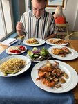 Очень понравились: рыба и морепродукты на гриле, говядина, свежие овощи и фрукты, блинчики, отменная паста🔥 Колбасы и сосиски совершенно не похожи на привычные, нет вкуса) Т.к. сладкого я не любитель - десерты почти не пробовала, но из того что ела вкусный лимонный пирог и круассаны🧡 Места много, на улице завтракать особенно приятно)