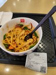 Блюдо называется WOK Том Ям. Небольшая порция лапши, три креветки, соус, овощи. Цена 500 руб. Не знал что лапша так дорого стоит. Подошёл к продавцу с претензией, что это не Том Ям. Он ответил, что не он устанавливает цены и что лапша в блюде дорогая. Никого не агитирую, но для меня это был последний раз когда я что-то покупал в этом заведении.