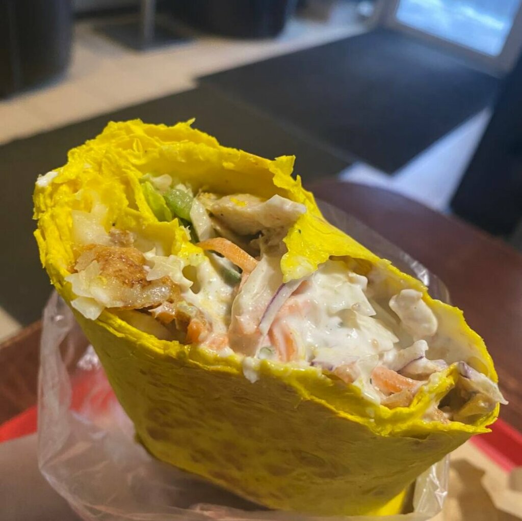 Относительно часто тут бывал раньше, лет 5-6 назад, когда жил в данном р-не Колпино, было всё вкусно. Решил сходить, перепроверить. Брал шаверму в "конверте", она примерно в 2 раза больше, чем стандартная, по размеру самое то. Овощи немного заветренные, но свежие, причём внутри не стандартная пара огурец-помидор, а ещё свежая морковка, дающая приятную сладость, китайская капуста, получается очень сочно, особенно в совокупности с соусом. Мясо пряное, насыщенный "тот самый" шаурмичный вкус, хрустящее, но не горелое. Единственное, что в шаверме прямо было чёткое разделение на две половины, в одной мясо, во второй овощи, приходилось по очереди кусать, но это не страшно. Лаваш хорошо поджарили, но увы, она слегка развалилась (но это от реально большого количества начинки). Сделали шаверму в целом быстро. Повар при готовке надевает перчатки. Из минусов: зал, видимо, убирают один раз в день, поэтому в течении дня скапливается грязь с улицы. Интерьер обычный, но некоторые столики стоило бы протереть. Кресла из кожзама все потрескались, нет нормальной вешалки. Но кухня чистая. В общем, очень неплохая шаверма, если в неё заскочить мимоходом.