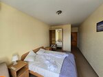 В принципе хороший отель, цена = качество! Отель находится в минутах 10 от ближайшего пляжа и набережной, до центра минут 40! Но, как по мне, распоряжение хорошее для тех кто не любит шум и гам, тут по вечерам тихо спокойно! Персонал вполне хороший, за чистотой смотрят как в номерах так и на территории с бассейном, он кстати по размерам и чистоте очень неплохой! Питания нет вообще, но на территории есть кафе, к отелю не относиться, средний чек на двоих 1200-1500! Еда впринципе вкусная! Недалеко есть столовая, там и по вкуснее и подешевле, как мне показалось! В кафе со своим нельзя!!Но территории так же есть монгал, столы и лавочки! Номер чистый, по размерам нормальный с видом на горы и море, был у нас, это на 3м этаже(есть лифт)! За почти 2 недели убирали 3 раза, замена белья 1 раз была! ИЗ МИНУСОВ: Замки в дверях, ну это ужас какой-то, копеечная проблема, но не решают! Постоянно заедают и клинят!! Утюг на этаже, грязный и почти не гладит! Практически ОТСУТСТВУЕТ WiFi!! Нет своей парковки!!! Имеется платный паркинг, НО в минутах 20 хотя-бы от отеля в сторону центра(400р сутки на сентябрь 2024г)