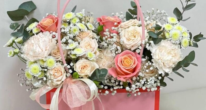 Букет в нежных оттенках прекрасно подойдёт для любого торжества, первого свидания, дня рождения, а так же как подарок молодым в день свадьбы. Ароматные розы, гвоздики в сочетании с кустовой хризантемой будут радовать своей свежестью и красотой .