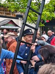 Очень хотелось посмотреть как всё это происходит. Столько положитеных эмоций и счастливых лиц редко где увидишь. Ощущение чего-то сказочного не покидало. Фонарщик был в форме обходил фонари с лестницей, толпа не давала ему проходу. Не смотря на всё он всём улыбался даря позитивные эмоции и не кому не отказывал в фото. Сказал что если погладить пуговицу на его мундире то исполнится загаданное желание.