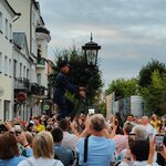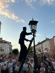 Удивительная локация и удивительный перфоманс. Редкий случай в Беларуси, когда буквально из ничего сделана великолепная туристическая традиция-достопримечательность. Ко времени зажжения фонарей на пешеходнйо улице собирается очень много людей, они идут по улице следом за фонарщиком, снимают его и фотографируются с ним. Этот же фонарщик на магнитах и открытках. Реальная изюминка города