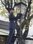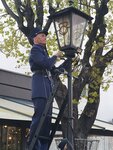 Замечательная традиция- зажигание фонарей по старинке!!! Приходит фонарщик и вручную зажигает)