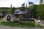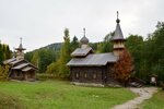Интересный этнографический парк с настоящими избами и часовней 19 века, привезённых из деревень чусовского округа! Приехали поздновато, поэтому экскурсию взять не успели - в следующий раз обязательно возьем, чтобы все послушать. Пока просто погуляли по парку, посмотрели памятный знак Василию Каменскому, Виктору Астафьеву, велосипед Артамонова, памятник Александру Грину, экспозицию, посвящённую чусовскому металлургическому заводу. Сам музей находится в красивом месте, посреди живописных холмов, покрытых лесом, на берегу небольшой речки.