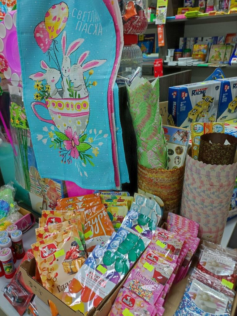 Маленький отдел канцелярии и игрушек, ассортимент не большой