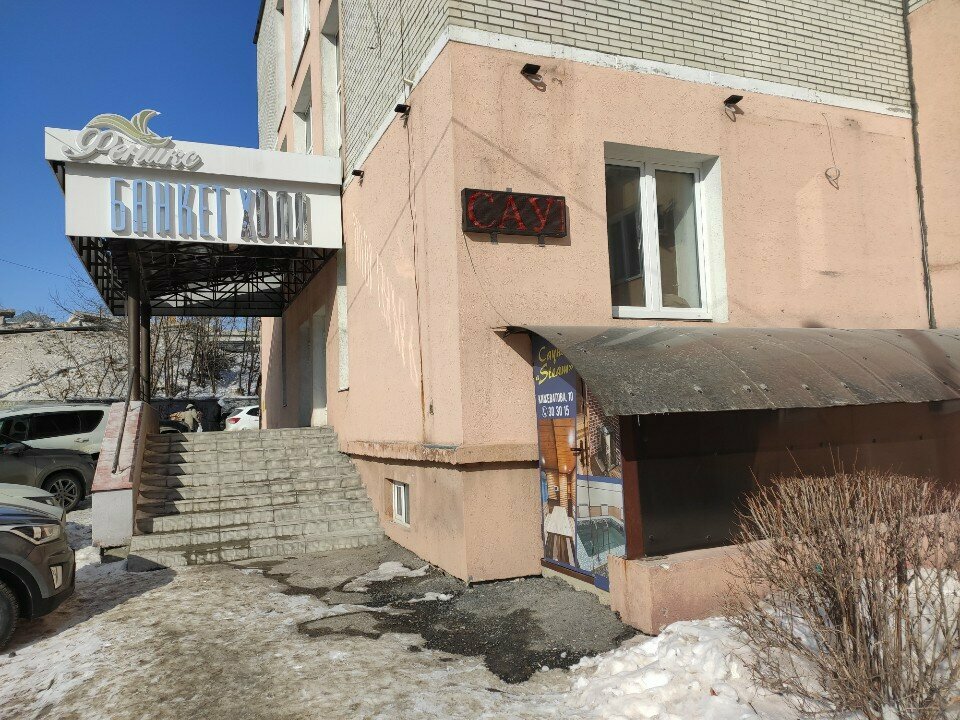 Отвратительная сауна. Ходили отдыхать с детьми и были в шоке. Бассейн холодный, огромное колличество хлорки дети не смогли купаться глаза щипало. И самое интересное закрывают дверь с наруже что противоречит пожарной безопасности. Интернета нет, а так как в подвале не ловит сидели без музыки их Wi-Fi не ловит.Посуды нет никакой, туалет не закрывается!!! Вообщем кашмар!!!!!!!!!