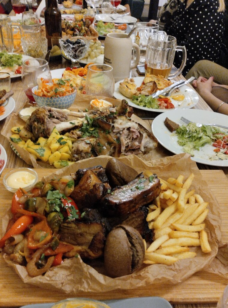 Зашли часов в десять вечера, искали бар с хорошим выбором пива. Плюсы: - Атмосфера пив бара, не слишком светло, в оформлении есть интересные вещи; - Блюда из морепродуктов очень на уровне, хорошая подача; - Выбор пива хороший, есть описание с плотностью и вкусами к каждому напитку; - Время ожидания терпимое, если думать, что готовят из под ножа; - Цены средние. Минусы: - мебель "уставшая", диван, где мы сидели, уже со слезающей обивкой; - пиво среднее, на утро ужасно болела голова, при том что выпили по паре бокалов; - еда в плане мяса очень средняя, если не сказать ниже среднего, но съедобно; - зал небольшой, столов на 8, если идёте большой компанией - лучше предварительно позвонить Общая информация: - туалет в единственном экземпляре; - меню достаточно разнообразное, по морепродуктам порадовало, есть лангустины.