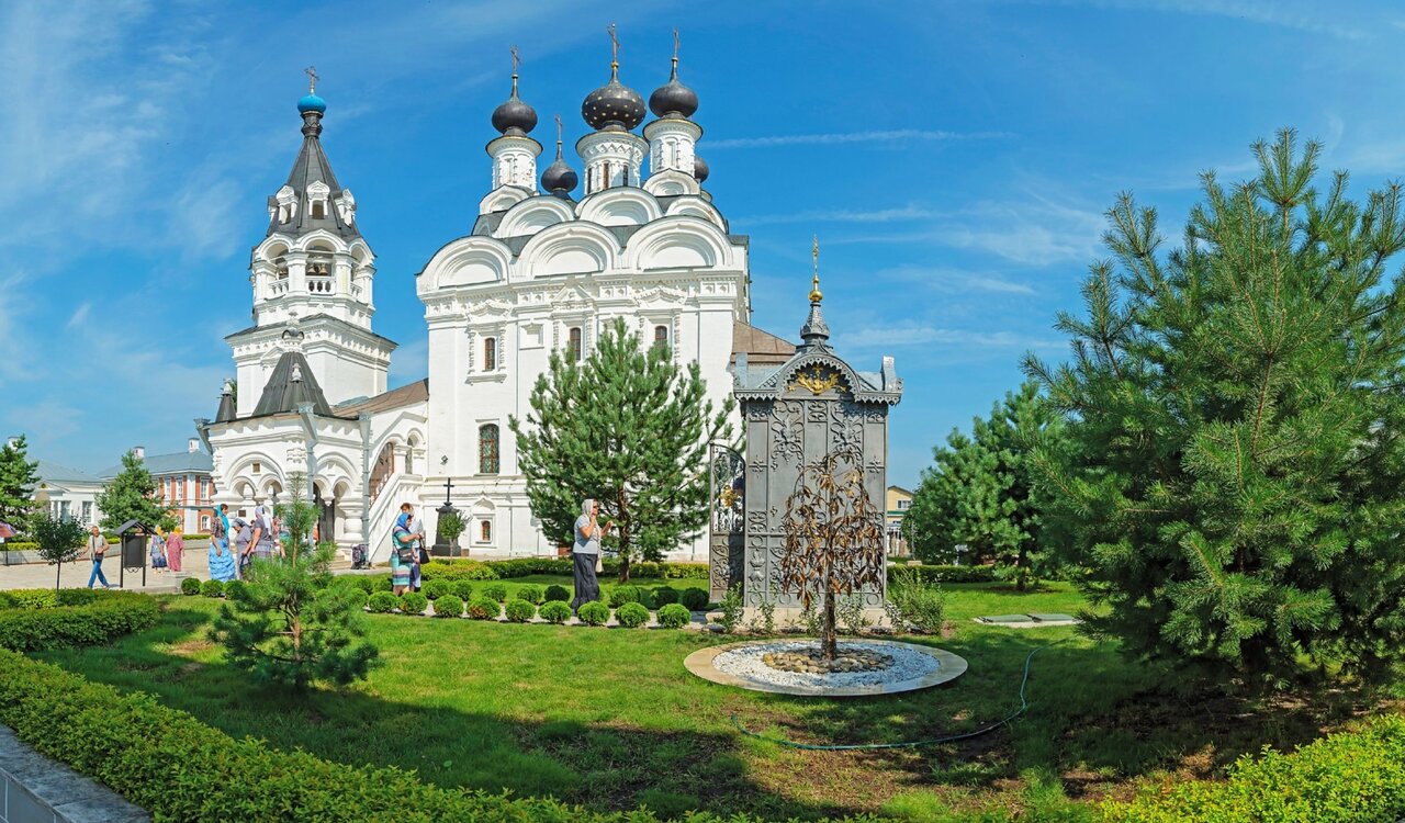 Некрополь — это достопримечательность, которая привлекает туристов своей историей и красотой. Здесь можно увидеть два собора, а также мощи святых Петра и Февронии. Кроме того, посетители отмечают необычное оформление территории, которое включает в себя дерево-фонтан и металлические конструкции серого цвета.