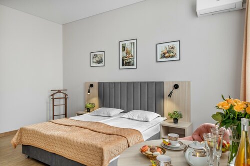 Площадь: 23 м2 Вместимость: 2 человека с возможностью расположения еще одного гостя на доп. месте (не входит в стоимость) односпальные кровати, а также двуспальный диван) Удобства: кондиционер, собственная ванная комната, холодильник