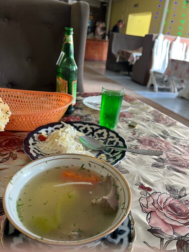 Согревающий суп из баранины с овощами. В насыщенном бульоне — нежная баранина, картофель, болгарский перец, красная морковь и лук. При подаче блюдо украшается свежей зеленью кинзы
