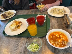 Кафе «Сытая утка» — это уютное место в центре Соликамска, где можно вкусно и сытно поесть. Гостям нравится местная кухня, особенно плов со свининой, говядина, куриные котлеты и рыба с гарнирами, а также салаты, выпечка и десерты. Кроме того, посетители отмечают, что в кафе чисто и стильно, а персонал вежлив и отзывчив.