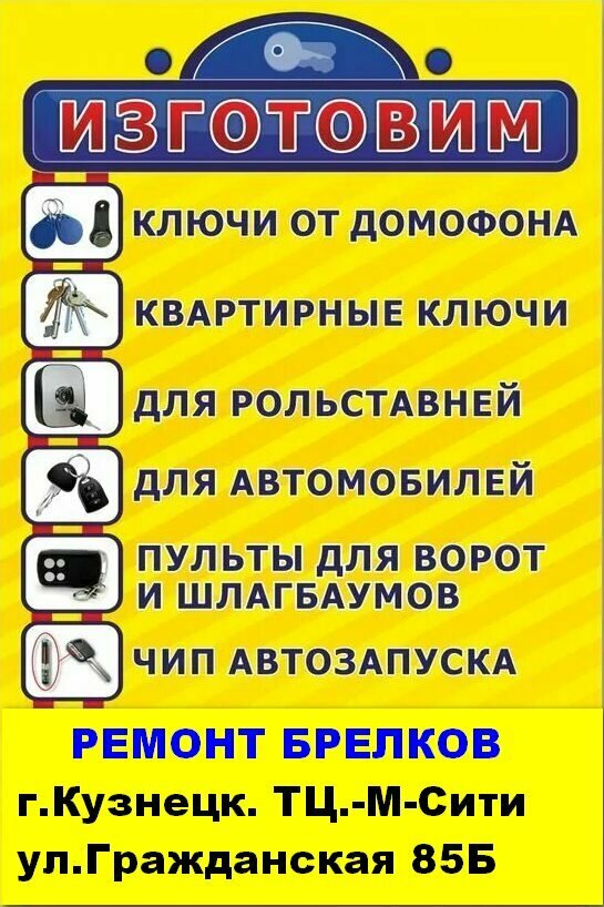 Manufacture and repair of keys Ключи и Брелоки, Kuznetsk, photo