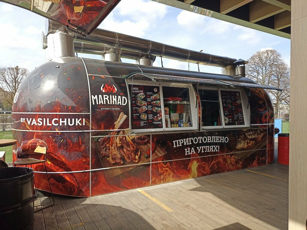 Сегодня посетили замечательное место Рестопаркинг.Прикольные треки с разной едой.Решили покушать в Барбекю ,ароматный запах свёл с ума,остались очень довольны,свинина сочная,сыр вкусненький и отдача быстрая,вежливый персонал.
