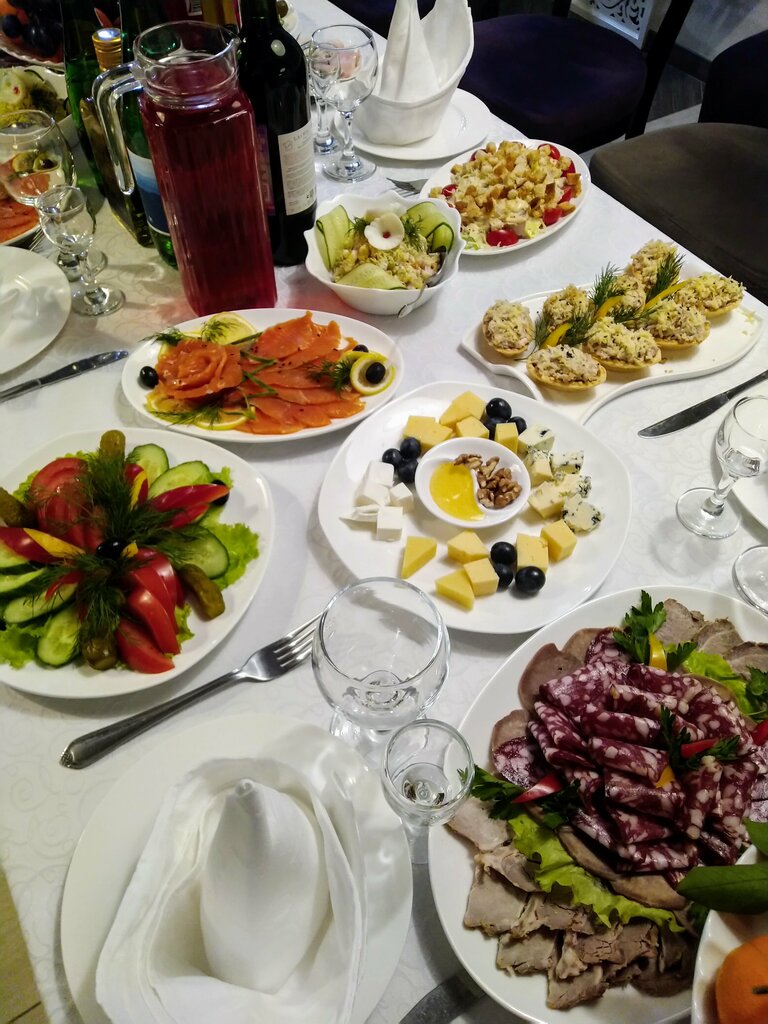 Отмечали юбилей -30 лет )Зал просторный,чистый ,уютный по интерьеру)Меню было вкусное-рыба в панировке,слабосоленая,жареный судак -прекрасны)Так же на горячее кура и свинина были вкусные,но меня поразила селедка под шубой 👌Персонал приветливый и любезный !Вообщем,с чистой совестью и от души советую рассмотреть это место для проведения вашего праздника 👍👍👍