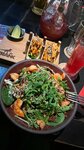 На выходной день лучше сильно заранее побеспокоиться о брони столика, ибо заведение действительно стоит Вашего внимания, если вы здесь ни разу не были, как и мы. Неоднократно советовали попробовать местную кухню, наши Новосибирские друзья. Мы были в воскресенье, в вечернее время, посадка полная. Это говорит о том, что заведение пользуется спросом. Несмотря на это, все напитки и блюда нам отдавали по заранее оговоренному времени. Долго не ждали. Официанты молодцы, внимательны и быстро обслуживают, дают рекомендации по меню, доброжелательны. Кухня восторг! Ребра, ммм… всем советую их обязательно попробовать! Мясо тает во рту, вкуснейший гарнир из печеного картофеля. У нас была порция big size, по-моему этого более чем достаточно, чтобы наестся. Но мы любим пробовать сразу несколько блюд, так скажем до отвала🦦 Какие ребра без пенного?! Да никакие, поэтому запивали крафтовым Premium Lager🍺 Легкое светлое пиво, в меру газированное, с приятным послевкусием. Ещё мы пробовали салат с хрустящими баклажанами, тако с курицей, салат хрустящий с креветками, беконом и карамельным арахисом🤌🏻 И чизкееееейк😇 вот тут нам показался лишним смородиновый джем. Сильно перебивает вкус самого чизкейка, который слишком хорош и без него, тут скорее всего напрашивается сливочный крем. И кальмар по-азиатски, показался постным🙁 В целом, вечер был прекрасным! Ужином у Вас мы остались сильно довольны и желаем не занижать планку! Ждём с нетерпением открытия в нашем городе. Гости из Барнаула♥️