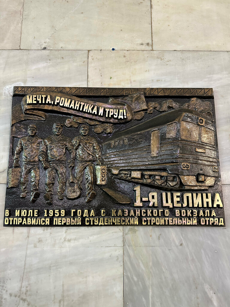 На Казанском вокзале в Москве есть памятник "Создателям российских железных дорог" с бюстом Николая I и фигурами известных деятелей РЖД (Черепановы, Витте, Мельников) и памятная доска, посвященная отправке первого комсомольского отряда на целину в 1959 году, что и есть «1-я Целина». Памятник железнодорожникам находится у Царской башни, а доска установлена в честь отправки молодежи на освоение целины, связанное с историей освоения новых территорий.