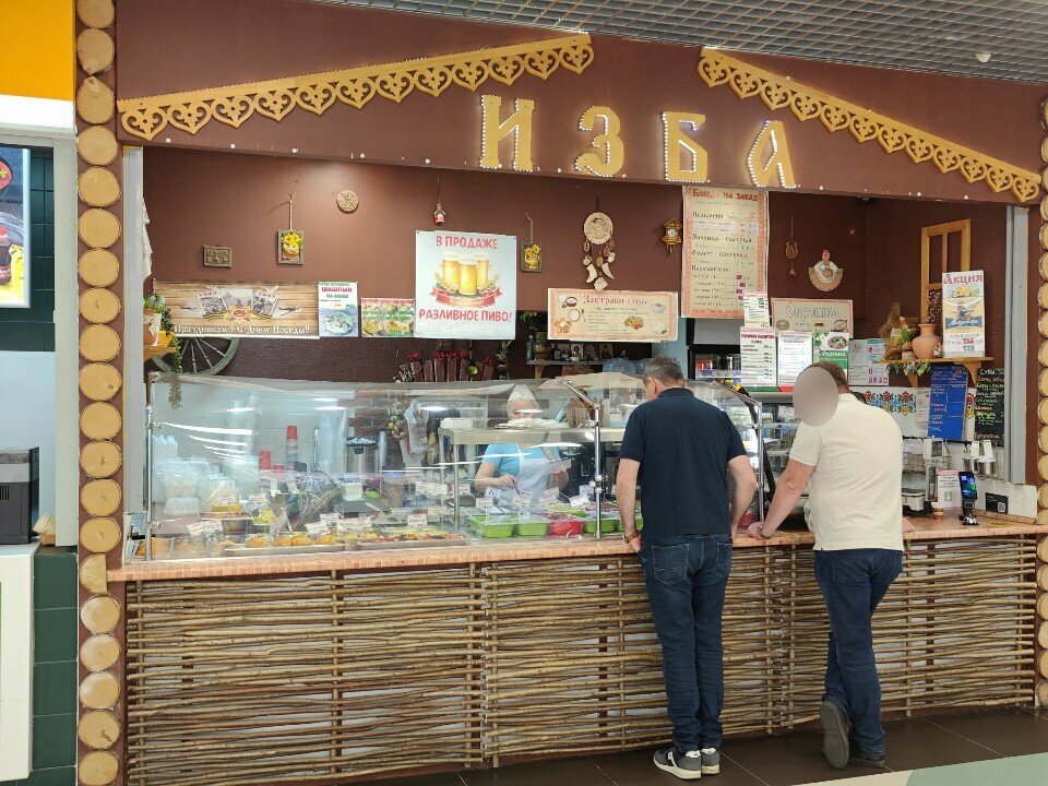 Зашли почти случайно на фуд-корт и остановили свой выбор на "Изба". Чисто. Светло. Красиво оформленный фасад с плетеным заборчиком. Большое меню, вполне себе большие порции, сьели соляночку и сырный супчик, рулетик куриный с ветчиной и картофель по деревенски, куриное филе с помидорчиками и чаек с лимончиком. Все свежее и вкусное! Обслуживал Сергей (25.01.25)- мастер и виртуоз своего дела. Работает быстро и красиво- "многорукий шива". Спасибо. Нам понравилось... Успехов и процветания! Борис и Галина