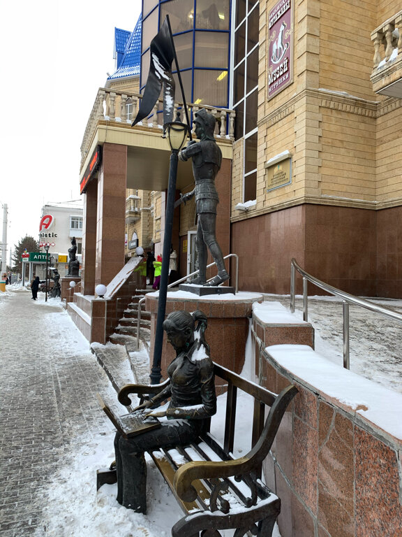 The monument is installed on the square in front of the Kazakh-French cultural center. On a wrought-iron bench there is a sculpture of a girl with a laptop on her knees, which Kostanay residents nicknamed "blogger". Her small bronze briefcase is next to it. The top buttons on the girl's shirt are unbuttoned, exposing her very impressive bust. Definitely worth a visit to this place!