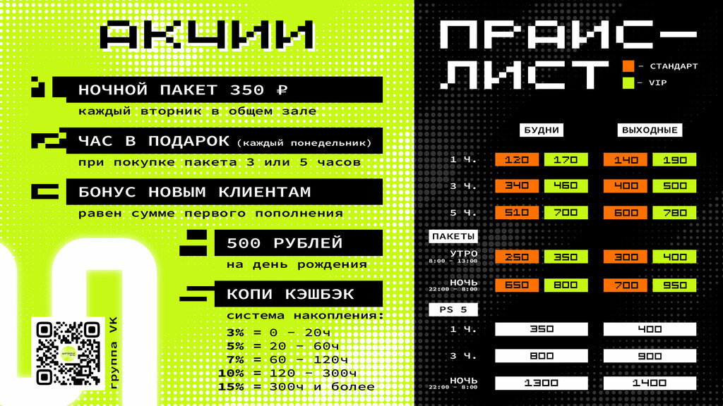 Очень хороший пк клуб Я бы сказал что есть минус незначительный в обычных местах парни покуривают Админы дружелюбные во всём помогают Вип места замечательные 360 герц монитор отдельная комната очень плавная картинка в кс2 Невероятно кайфовые наушники Кресла новые комфортные В пс стоят относительно новые пс 5 Диваны кайф Однозначно советую клуб Даже без стим аккаунта