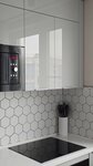 Маленькая кухня с фасадами AGT, фурнитурой Blum и Firmax. Столешница из акрилового камня Grandex не входит в стоимость.