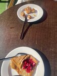 Почитал отзывы и сразу знал что надо идти заказывать все у стойки, а не садиться и ждать! Все меню весит у стойки на стене,- иногда не просто сориентироваться, подсказывают не очень, так что лучше сначала изучить, а потом заказать - что бы не тупить с заказом. Салат Цезарь, борщ, пельмени. - все норм. Не супер мега вкусно, но съедобно. Пельмени по умолчанию всегда в бульоне 🤷🏻‍♂️, к борщу дают кусочки сало и аджику в отдельно - неплохо! Кофе норм,- но порция показалось небольшой. Шашлык всегда надо ждать, думаю, если много народу, это может затянуться, хотя я был в не сезон, может по теплой погоде работают не так. Из плюсов - демократичный ценник, есть выбор блюд, съедобно, чисто, быстрое обслуживание,веселые девчонки работают. Из минусов - не просто разобраться с меню, если только вы не берете блинчики и кофе. В здании нет туалета ,- только рукомойник. В туалет надо идти отдельно на территории парка. Алкоголя нет - детский парк. Работает громко телек с мультами и шумно. Кому то может показаться это неудобным - но это же детский парк! Так что, вероятно ребенку не будет очень скучно трескать. :) Есть столики на улице - но в конце сентября уже было не актуально - холодно. Если хочется поесть и/или перекусить - отличный не дорогой вариант. За изысканной кухней и романтическим вечером - это не сюда.