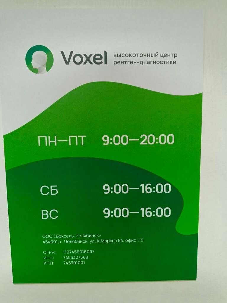 Была сегодня в центре Воксель , на 3D снимке по направлению врача- стоматолога. Фирму нашла легко , при входе в бизнес-центр охрана любезно подсказала куда пройти. В центре чисто, персонал вежливый, работают быстро и четко, могут попросить переделать снимок, но это только для улучшения качества лечения и удобства работы врача. Есть бесплатная водичка , место для ожидания. В целом, мне все понравилось, твердая 5-ка!