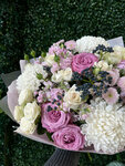 Стильный букет из кустовой пионовидной розы Джульетта и ароматной маттиоллы