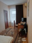 Отличная гостиница. Проживал в одноместном однокомнатном, чисто, ничего не сломано, номер обеспечен всем необходимым (чайник, холодильник, телевизор, wi-fi, фен). Удобно расположен ресторан (3-ий этаж, по улице ходить не надо), завтрак, входящий в стоимость, вкусный, предлагали два блюда на выбор, очень сытно, также в ресторане всегда готовы накормить и в обед и на ужин. Есть сауна, сувенирная продукция, документы оформят так как надо и без опозданий. Рекомендую!