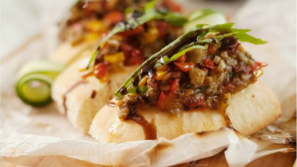 Это легкая закуска, состоящая из двух кусочков хлеба, между нами начинка из ветчины, помидора, листьев салата, голландского сыра, с добавлением соуса 1000 островов. Панини подогревается на гриле