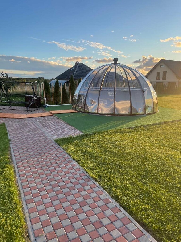 Купол брали для защиты бассейна от листвы. Прекрасный вариант. Большой плюс, что и вода под ним дольше сохраняет тепло. Дети были в восторге, что купальный сезон был продлен
