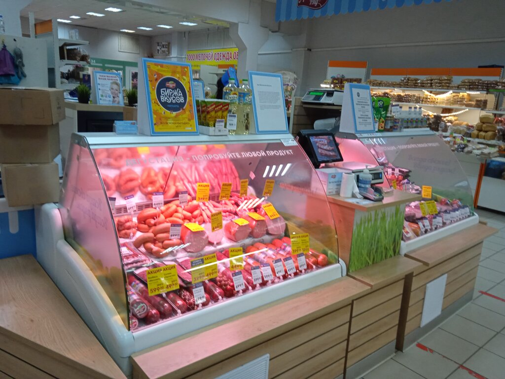 Хороший магазин. Всегда все свежее,часто бывают скидки Есть нарезка. Продавцы приветливые.
