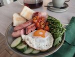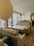 Уютная атмосфера, наверное не плохо выпить чай. Он, кстати, всего 150 руб за 500мл. Кухня очень отвратительная. Цезарь с креветками захотелось вернуть. Креветки холодные и усохшие, явно сваренные давно, вместо соуса просто майонез, и даже черри нет. Сыр - не думаю, что пармезан. Ну и сама порция настолько маленькая, что был вопрос, за что вообще 390руб? Осталась разочарована. Плюсы: десерты выглядят хорошо. Обслуживание: 80℅, Мне не понравилось то, что пришлось ждать приёма заказа и ставили не прям перед нами порции, а на другую сторону стола, но чай сделали очень быстро, подали вместе салат и завтрак для мужа. Попросила долить кипяток в чайник, добавили. Девушка приятная. Сосиски выглядят дешевыми в завтраке, но муж сказал, что хорошие на вкус, фасоль будто просто из магазинной заготовки. Музыка громкая, попросила сделать тише, сделали, но все одно громко, общаться трудно, хочется уйти побыстрее.