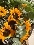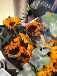 Присоединяюсь к словам, что готовые букеты брать не стоит. Купила букет с подсолнухами, дома увидела, что один из цветов отвалился и в плесени. На некоторых других лепестки довольно жухлые. Сейчас, менее двух суток спустя после покупки, второй цветок развалился (фото 1). На фото 2 букет через несколько часов после покупки. Почему-то я подумала, что если взять готовый букет, то это значит, что он будет из свежих цветов. А если брать просто пачку, то там уже как попадется. Может если собирать букет под заказ, то такого нет. Но пока у меня единичный опыт покупки в данном месте.