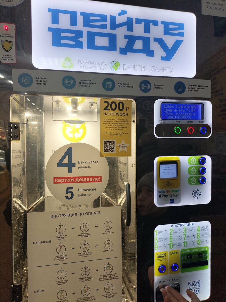 Автомат находится по улицы Юбилейный, 3а в здании ТЦ, рядом со стойкой охранника, на счет воды очень вкусный, прозрачный как родниковая вода, каждый день покупаю по 10 литров. Раньше из под крана пил, смотрю что то не так со здоровьем, уже как месяц покупаю из этого автомата, недорого особенно если картой оплатите, так что советую, однозначно 5 ⭐