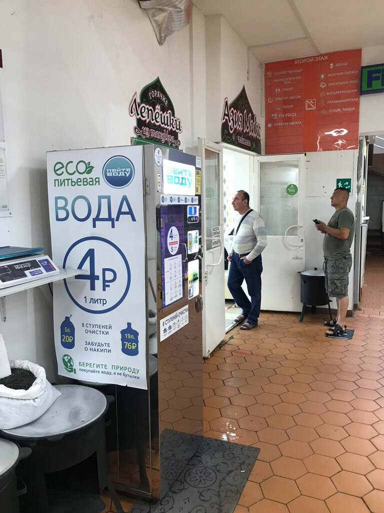 Отличная вода в удобном месте. Стоит дешевле, если платить картой. Водомат находится в помещении рынка, что тоже хорошо.